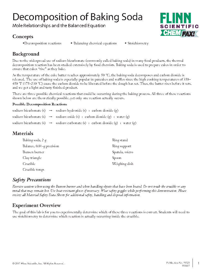 Decomposition Of Baking Soda Flinn Scientific