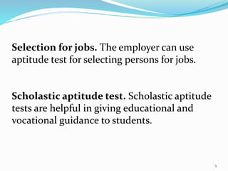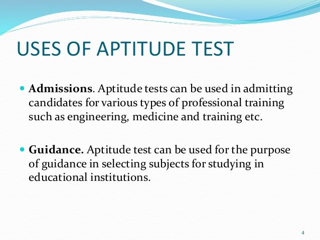 Students or employ with superior aptitude are preferred for the positions. Ii These tests are used to help the students in the proper choice of courses subjects and careers. They consist of multiple choice questions and are held as proper exams.